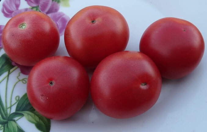 Плоды розовые, округло-плоские, без пятен и трещин, плотные, транспортабельные, имеют очень приятный вкус, сладкие с приятным ароматом.  Высокоурожайный детерминантный сорт. Высота куста - 0,8 м. Масса плодов: 30–70 г. Среднего срока созревания.