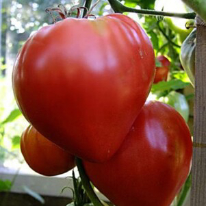 Хороший редкостный старинный сорт. Плоды большие, розовые, сердцевидные, малосеменные, мясистые, отличного вкуса, сахаристость и кислотность в отличных пропорциях. Очень урожайный сорт, плодоносит до заморозков. Масса плодов: 300-500 г. Высота куста - 1,5 м. Среднего срока созревания.