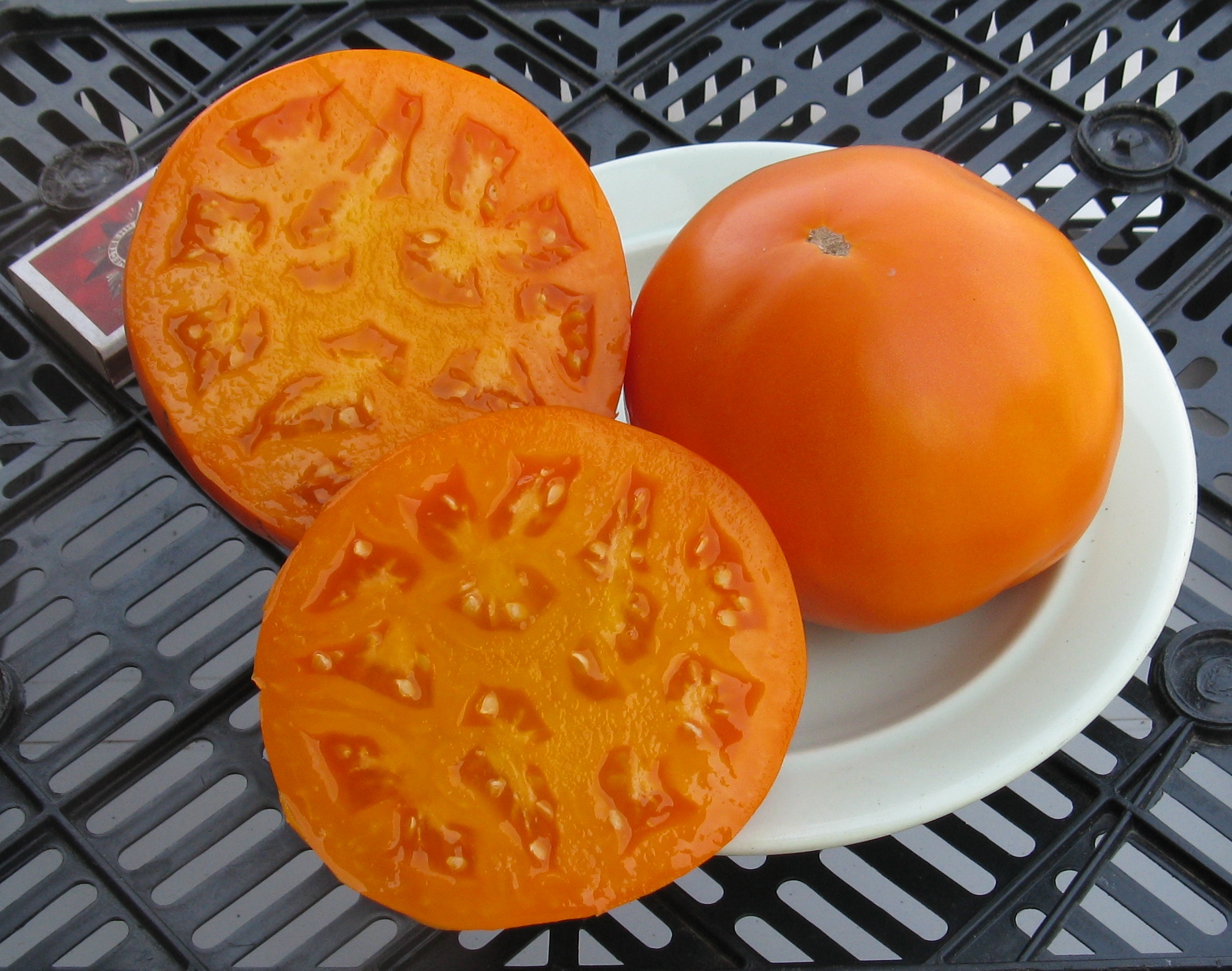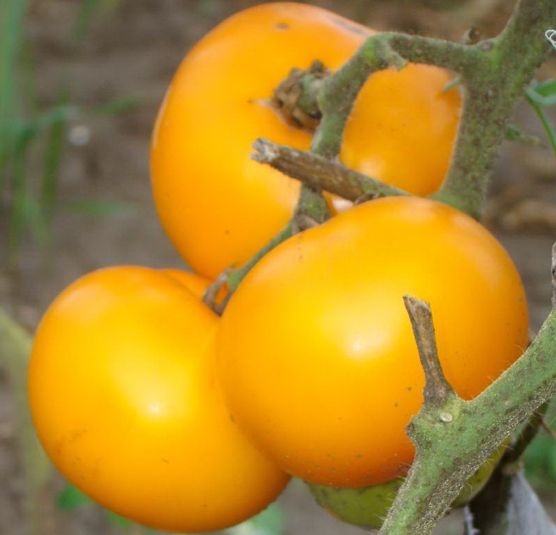 Урожайный сорт. Плоды оранжевые, плоскоокруглые, плотные, не растрескиваются, вкусные. Кусты крепкие. Высота куста - 1,8 м. Масса плодов: 300-400 г. Среднего срока созревания.