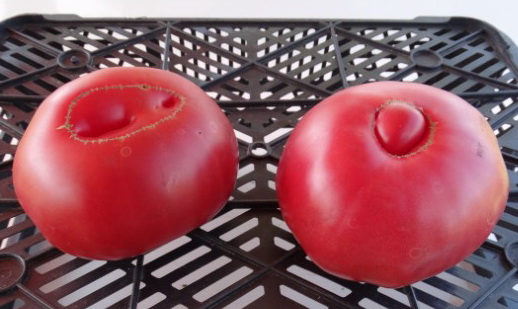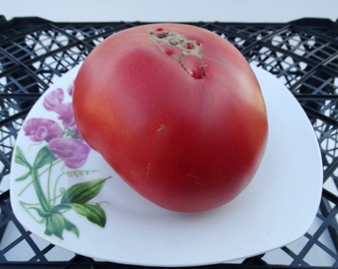 Крупные плоды ярко-малинового цвета, плоскоокруглой формы с заметными рёбрышками возле плодоножки, очень вкусные, сладкие, мясистые. Удивительно лёжкие, долго сохраняются на кустах. Отдельные плоды - до 800 г. Урожайный сорт, устойчивый к заболеваниям. Кусты мощные. Высота куста - 1,5 м. Среднего срока созревания. Масса плодов: 150-400 г.
