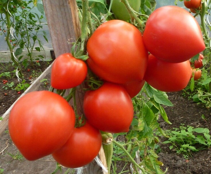 Помидоры сливовидной формы с выступающим «соском» на конце, в стадии зрелости красного цвета. Имеют отличный вкус, оригинальный вид. Вес плода около 150 г.