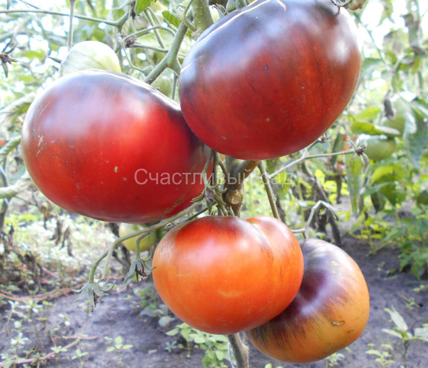 Высокорослый, урожайный сорт, длительного периода плодоношения. Обладает повышенной устойчивостью к фитофторозу. Плоды красивые, крупные, сине-розово-красные. Среднего срока созревания. Масса плодов: 170-400 г. Высота куста - 1,8 м.