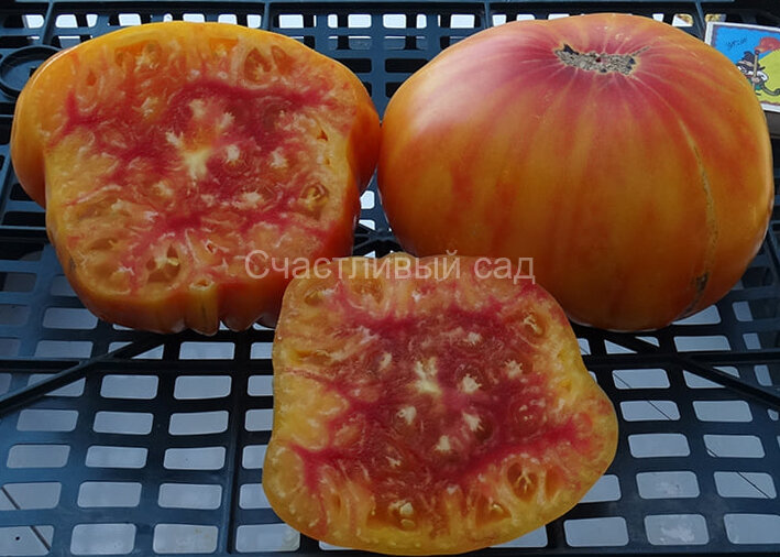 (США) Очень урожайный сорт. Очень мощные и густо облиственные кусты. Плоды крупные, жѐлто-оранжевые с румянами, красивая мякоть. Мясистые, средней плотности, умеренно сочные, превосходного сладкого с гармоничной кислинкой вкуса и приятного аромата. Среднего срока созревания. Высота куста - 1,5 м. Масса плодов: 280-800 г.