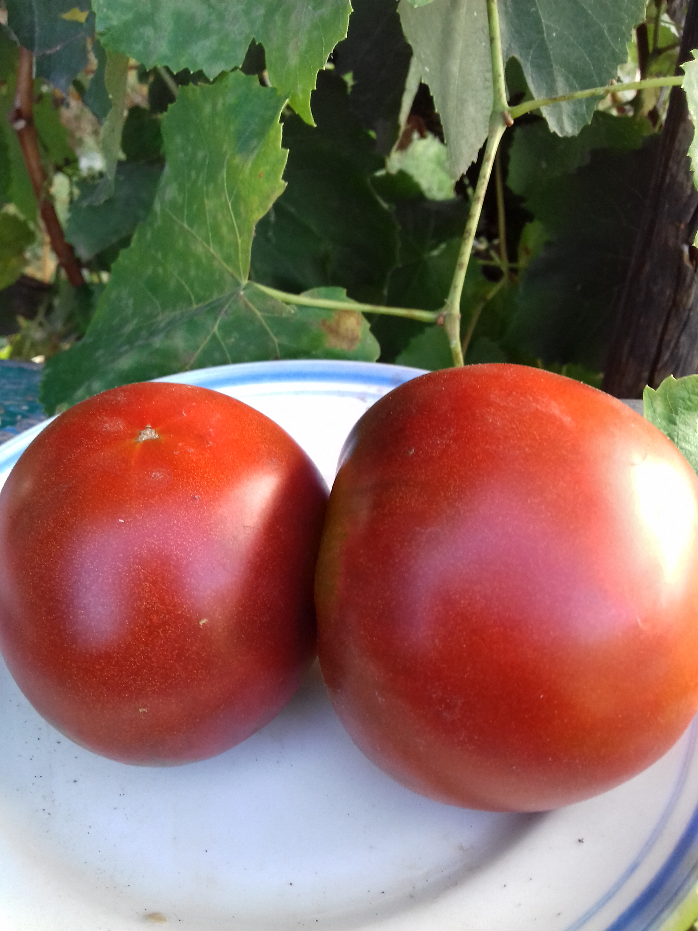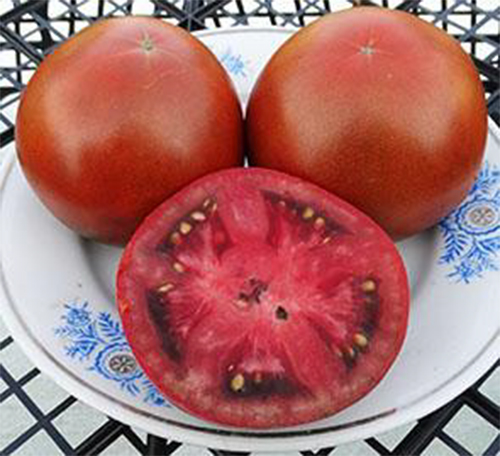 Высокорослый урожайный сорт. Мощные густые кусты. Плоды очень плотные, блестят словно лакированные, насыщенного коричневого цвета, с толстой шкуркой. Очень насыщенный взрывной вкус с кислинкой. Гель очень красивый, тѐмно-красный и получаемый из этих томатов сок выглядит как красное вино. Мякоть очень сладкая, а гель очень терпкий, и это очень приятная комбинация вкусов. Средне-поздний. Высота куста - 1,5 м. Масса плодов: 100-250 г.