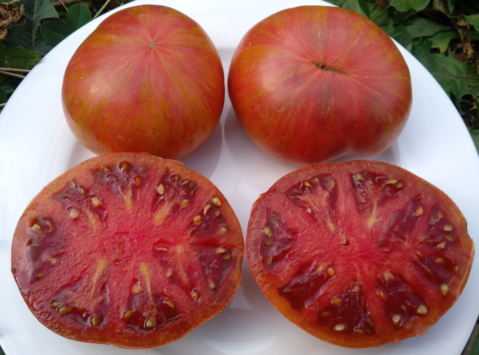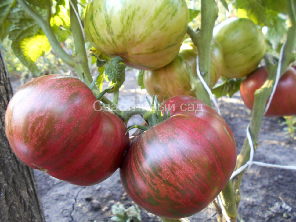 Сорт 2016 г. из проекта «Карлики». Высокоурожайный, красно-зелёный полосатик. Многокамерный, мясистый, очень сочный, вкусный, с очень хорошим ароматом. Высота куста - 0,7 м. Масса плодов: 150-300 г. Среднего срока созревания.