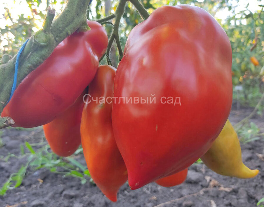 (США) Удлинённые плоды, могут быть с острым носиком, красного цвета. Розовая мякоть с повышенным содержанием сухого вещества. Прекрасный сладкий вкус без кислинки. Плоды мясистые, сока и семян мало. Пригодный для вяления и консервации. Средне-поздний. Высота куста - 1,5 м. Масса плодов: 130-320 г.