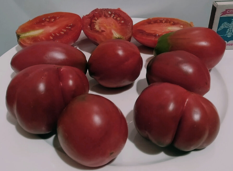 Высокоурожайный высокорослый сорт устойчивый к заболеваниям с длительным периодом плодоношения. Плоды грушевидные, с вертикальными ребрышками, тёмно-бордово-коричневого цвета вкусные, сладкие, сахаристые на изломе. Среднего срока созревания. Высота куста - 1,8 м. Масса плодов: 70-100 г.
