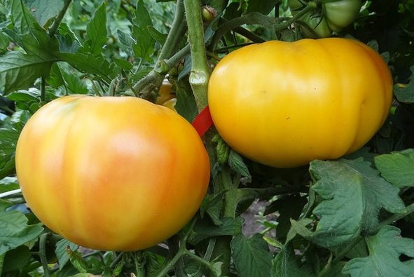 Сорт народной селекции из города Минусинска. Плоды плоскоокруглые, жёлтые, с розовыми лучиками, идущими от верхушки, мясистые, сочные, сладкие, превосходные на вкус. Мякоть нежная, семян мало. Из таких плодов получаются великолепные салаты. Очень урожайный сорт. Листья простые, слегка поникшие. Среднего срока созревания. Высота куста - 1,8 м. Масса плодов: 260-600 г.