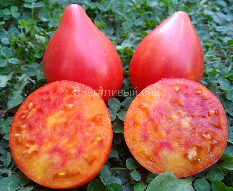 (Фасовка по 10 шт.) Плоды - двуцветные сердца, сладкие, мясистые, сочные, очень вкусные. Высокоурожайный сорт. Может обильно плодоносить в открытом грунте при жаркой и засушливой погоде. А в теплице плодоносит без остановки. Среднего срока созревания. Масса плодов: 150-300 г. Высота куста - 1,8 м.