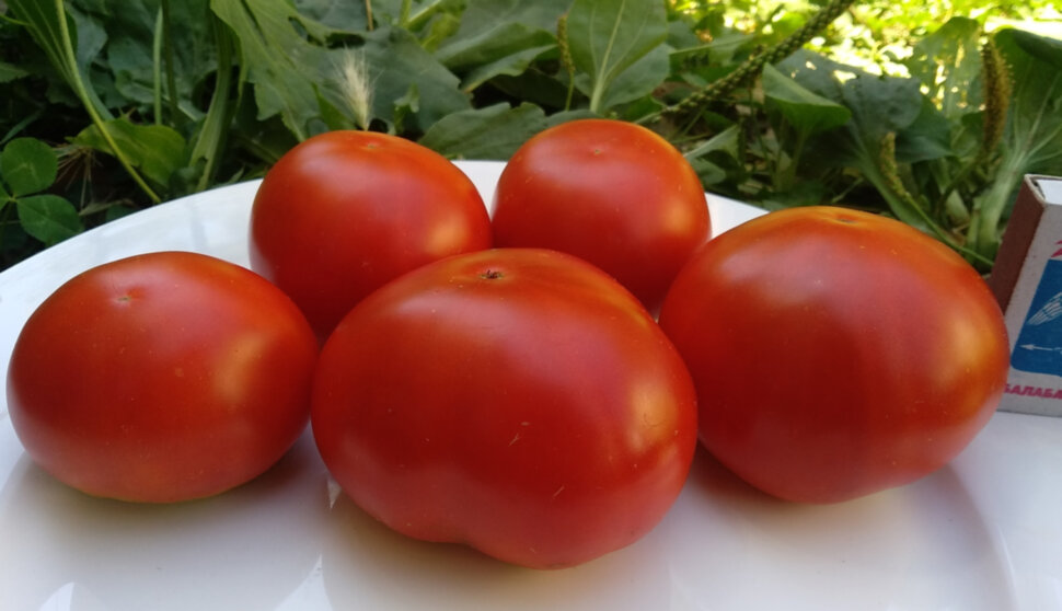 (Испания) Плоды красные, плоско-округлые, блестящие. Высокоурожайный высокорослый сорт, болезнеустойчивый и нетребовательный. Плоды созревают на 40 день от начала цветения, транспортабельные. Масса плодов: 200-400 г. Средне-ранний. Высота куста - 1,8 м.