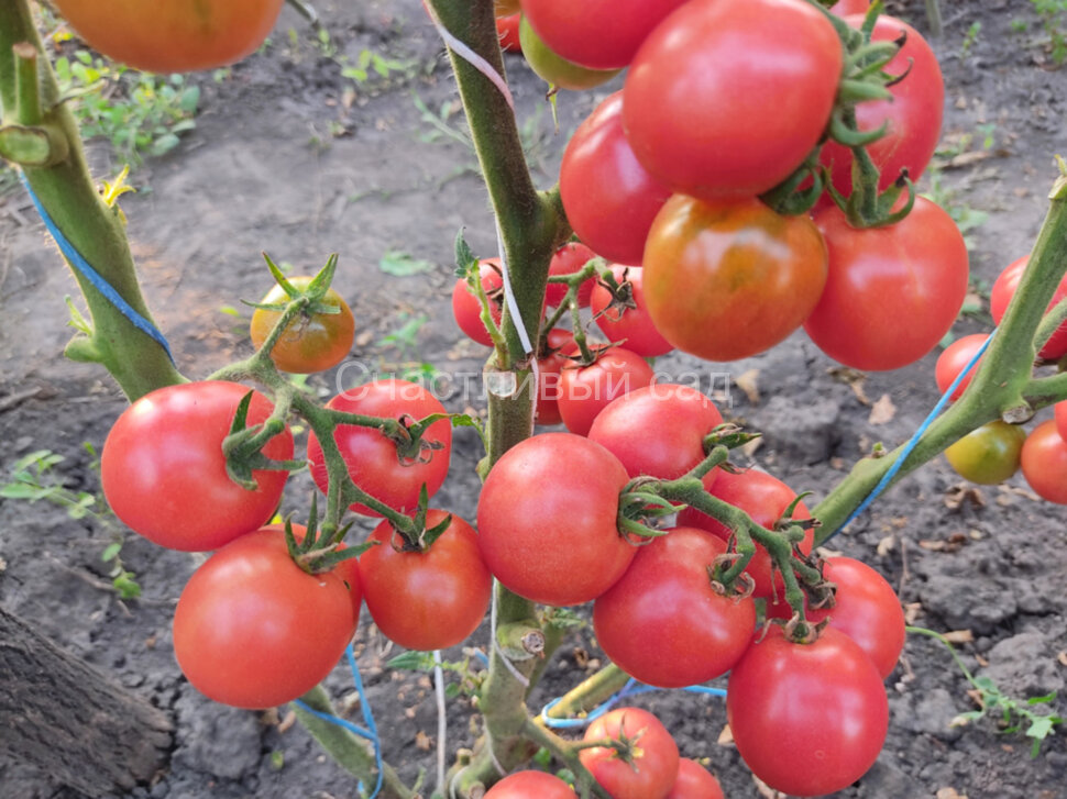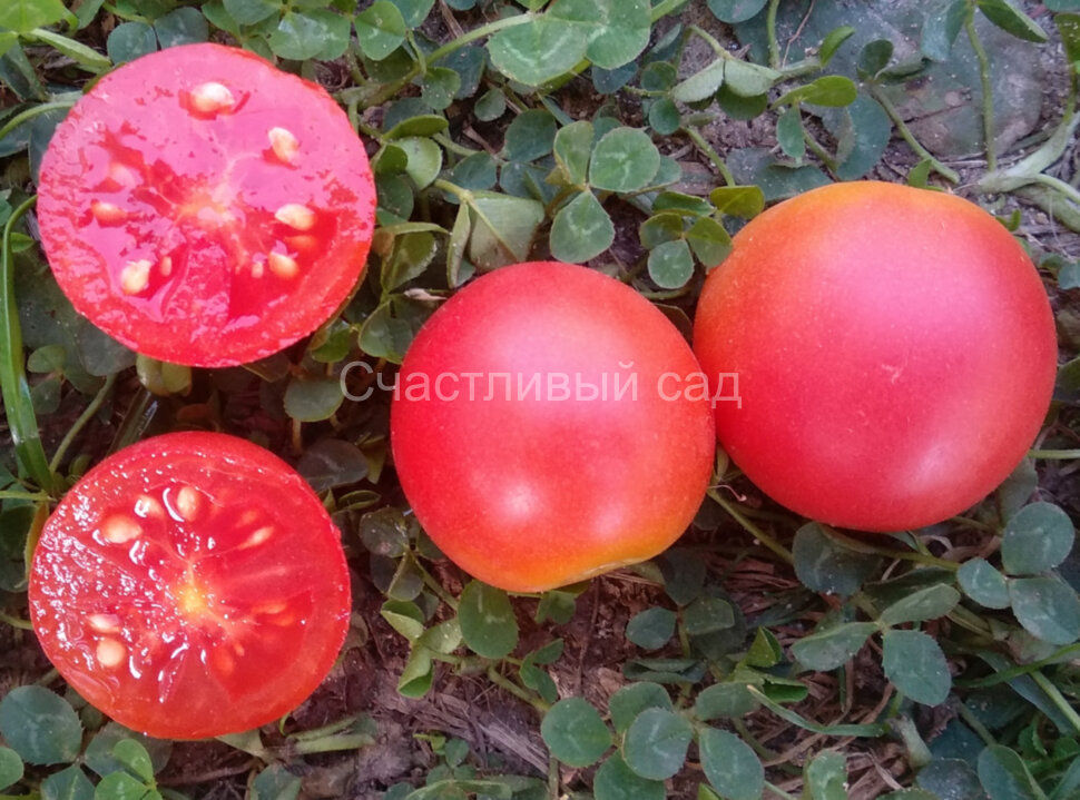 Плоды круглые или слегка сливовидные, малиново-розового цвета, с плотной кожицей, довольно лёжкие и вкусные. Отлично подходят для салатов и закусок. Урожайный  сорт. Высота куста - 0,7 м. Масса плодов: 25-40 г. Средне-ранний.
