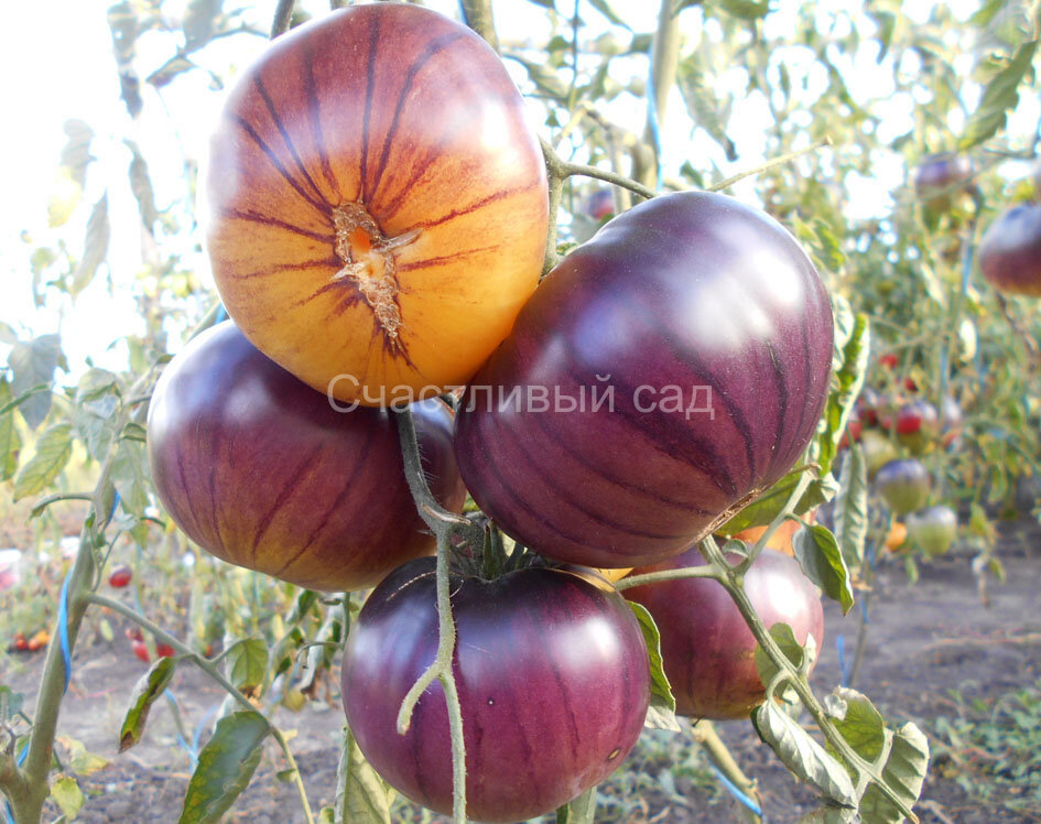 Новый сорт, появившийся от скрещивания White Wonder и Baby Blue, селекции Роланда Буланже, Sart-Eustache, Бельгия. Плоды плоскоокруглые, светло-кремовые, с сине-фиолетовыми, антоциановыми плечиками и такими же полосами-мазками на боках, сочные, сладкие. Рекомендованы для диетического питания. Урожайный сорт. Среднего срока созревания. Высота куста - 1,7 м. Масса плодов: 250-650 г.