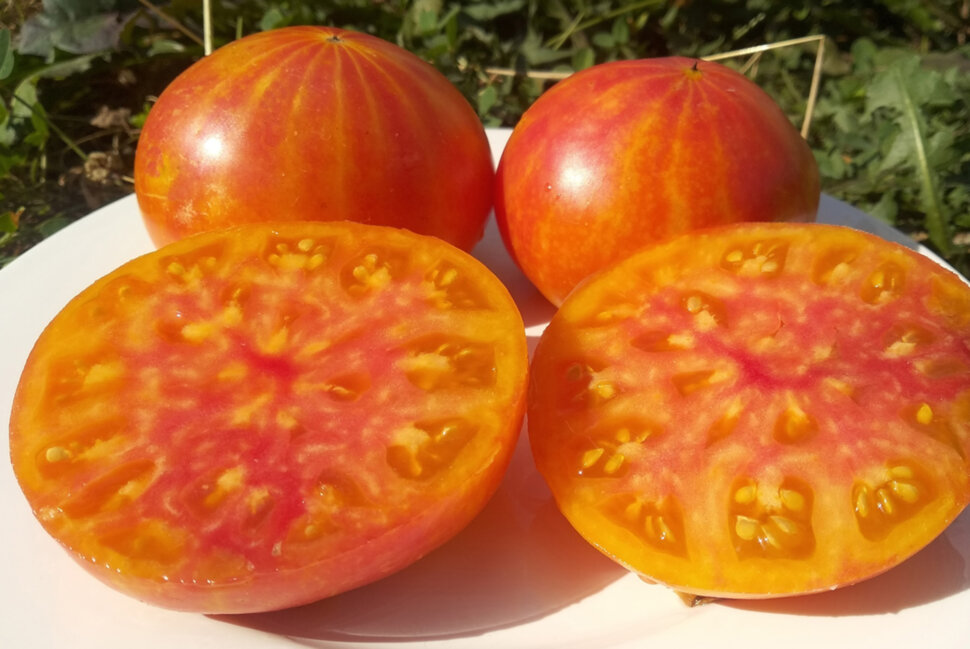 Семейная реликвия, привезенная немецкими иммигрантами в США. Плоды розово-оранжевые, плоскоокруглые, устойчивы к растрескиванию, мясистые, сочные, превосходно сладкие на вкус. Среднерослый, высокоурожайный сорт. Высота куста - 1,3 м. Масса плодов: 300-900 г. Среднего срока созревания.