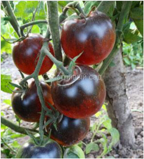 (США) Урожайный сорт Брэда Гейтса из Калифорнии. Незрелые плоды индиго-зелёного цвета, зрелые - красно-чёрные. Плоды блестящие, вкусные, растут гроздями. Сорт продуктивен даже в прохладном климате. А прохладная погода, как и солнце, усиливает антоциановую окраску синих томатов. Масса плодов: 50-60 г. Высота куста -1,5 м. Среднего срока созревания.