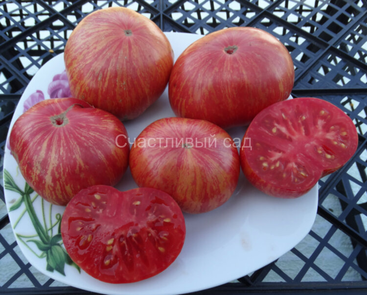 (Фасовка по 10 шт.). Новый сорт, разработанный Биллом Джефферсом. Это разделение линии "Big Cheef" в результате скрещивания "Brandywine Sudduth" и неизвестного родителя. Высокоурожайный сорт. Лист картофельный. Плоды пестрые полосатые, плоско-округлые, плотные, достаточно мясистые, сочные, сладкие, вкусные. Масса плодов: 100-200 г. Среднего срока созревания. Высота куста - 1,5 м.