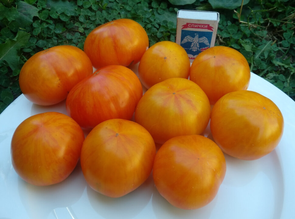 (США) Сорт Дина Стейлера из Dwarf Tomato Project. Плоды сливовидные, оранжевого цвета с розовыми полосами, медово-сладкие, растут кистями. Очень урожайный сорт. Масса плодов: 30-50 г. Высота куста - 1 м. Средне-ранний.